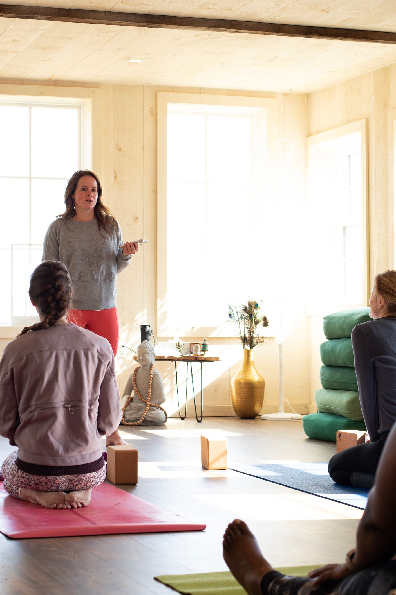Yoga classes + workshops will take place in the cozy stone cottage living room and the newly renovated serene barn.